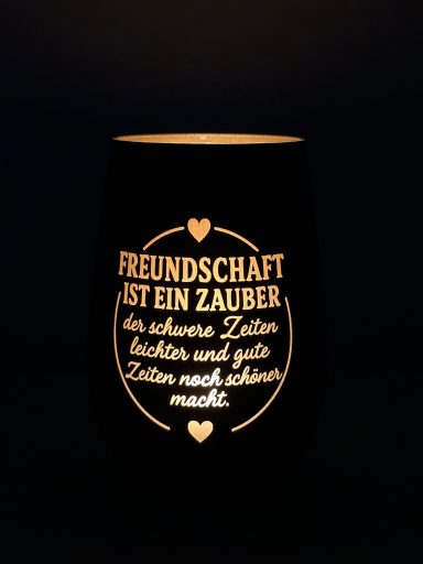 Diese Windlichter werden durch moderne Lasergravur zu einzigartigen Stücken veredelt. Sobald das Kerzenlicht von innen heraus scheint, entfalten die Gravuren ihre volle Wirkung und erzeugen stimmungsvolle Schattenspiele, die eine warme und gemütliche Atmosphäre schaffen.